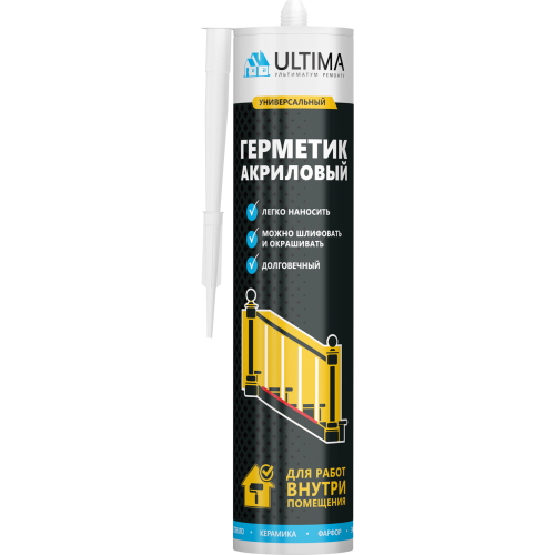 Герметик акриловый ULTIMA – универсальный акриловый герметик на водной основе для заполнения трещин и малоподвижных швов.