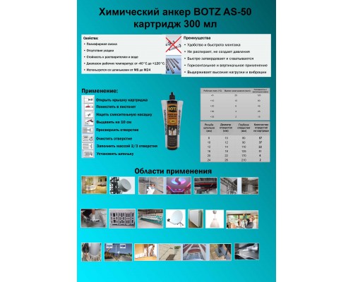 предлагает новинку – полиэфирный (полиэстеровый) анкер BOTZ AS-50 в картридже 300 мл. по отличной цене 19 руб. (вкл. НДС).